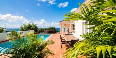 Each room opens to the enormous patio which runs the entire length of the villa. Swim in a private pool overlooking this scenic Caribbean vista.
