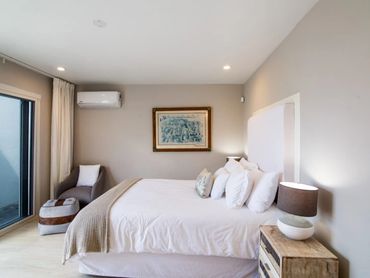 Directly on Sint Maarten's Simpson Bay Beach, this luxurious beach level studio guest house has everything you need for your vacation. Fully equipped with a full kitchen, including a full-size gas stove/oven, microwave, refrigerator, dishwasher, reverse osmosis water system for drinking and a Keurig coffee maker. A large walk-in closet, equipped with a safe, linens, along with a bath and fully enclosed glass shower. LED lighting, air conditioning, ceiling fans, high speed internet access and IPTV Television is included. There is a queen size bed with the softest linens known to man in addition an inside seating area and an outside patio table with umbrella. The guest house is fully alarmed with your own keypad with video intercom and doorbell. Parking for 1 car inside the gated driveway Fully automatic generator backup is included along with maid service.